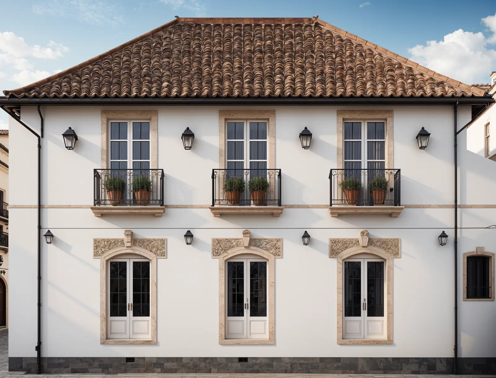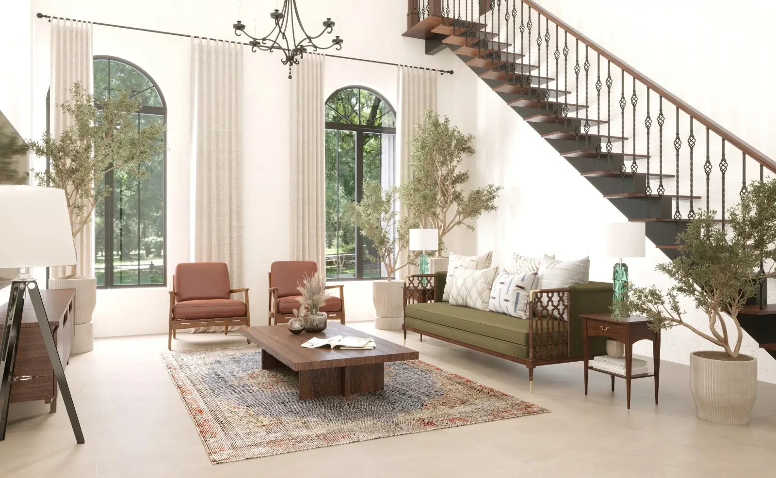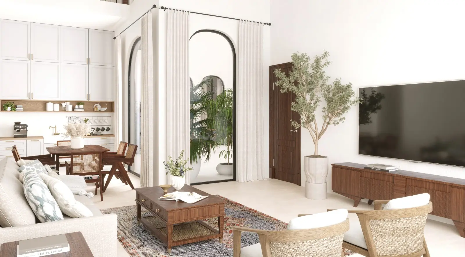 - Open-plan interiors with artisanal Spanish design elements